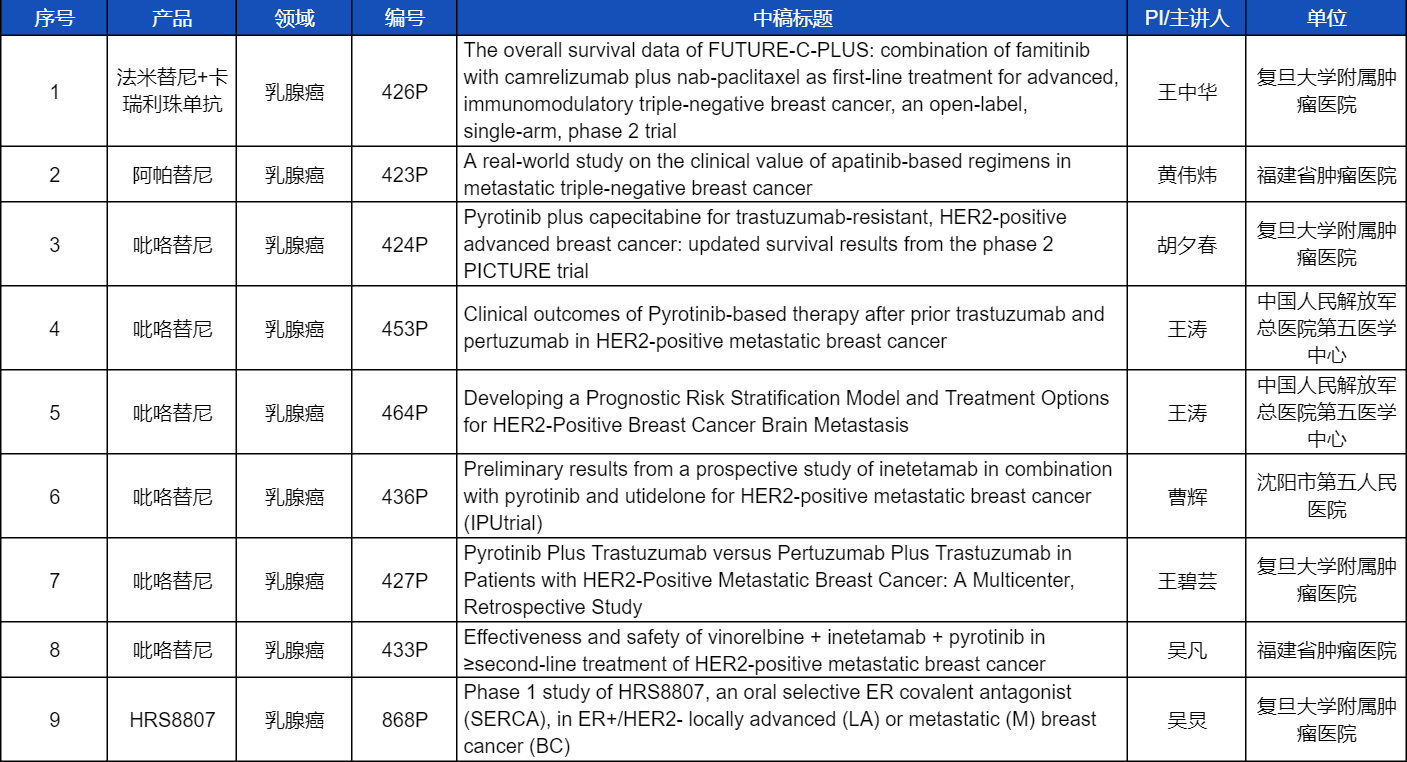 乳腺癌领域: